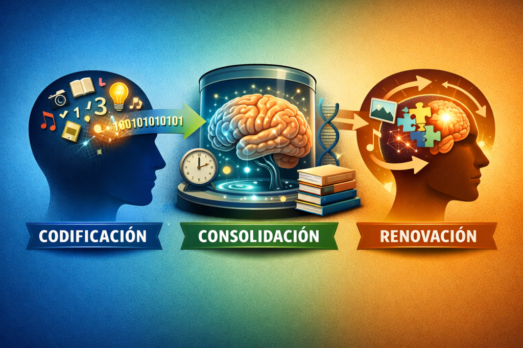 - Consolidación sistémica: reestructuración del circuito que soporta el recuerdo (días–años), desplazando la dependencia del hipocampo hacia redes corticales amplias.