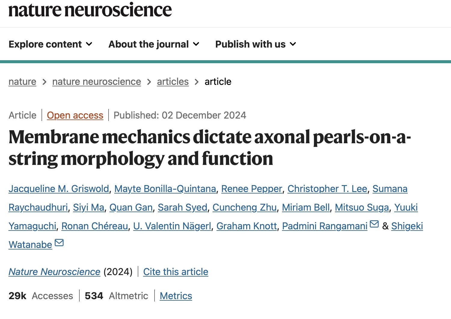 Griswold, J.M., Bonilla-Quintana, M., Pepper, R. et al. Membrane mechanics dictate axonal pearls-on-a-string morphology and function. Nat Neurosci (2024).